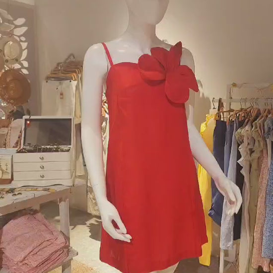 Robe d’été en lin à bretelle - rouge